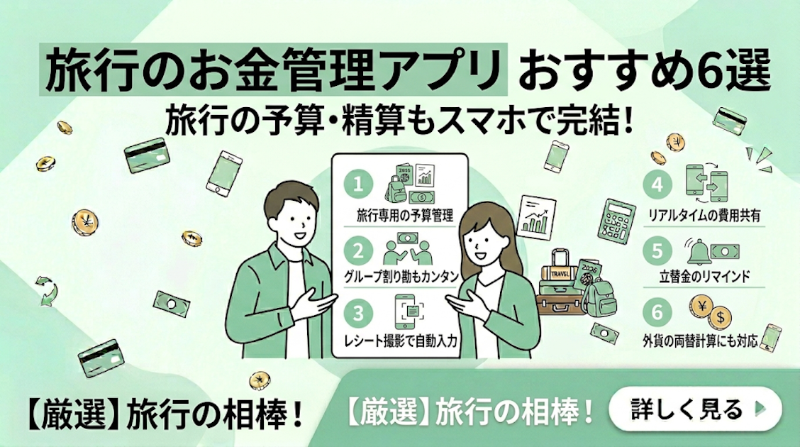 旅行のお金管理は、アプリを使うことで立替記録から精算計算まで大幅に楽になります。
